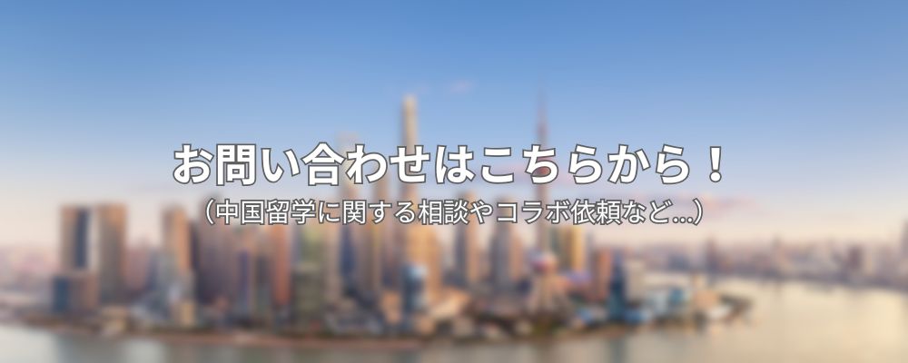 「中国留学についてもっと詳しく知りたい」「今の成績で大丈夫かな?」といった留学相談から、「ブログに記事を寄稿したい」「一緒に面白い企画をやりたい!」といったコラボのご依頼まで、どんな内容でも大歓迎です。
